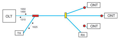 Pic 1. Wavelength multiplexer and filter connection diagram in a PON network.